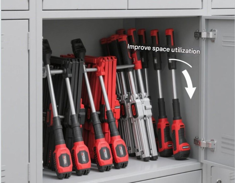 Feabhas a chur ar úsáid spáis: le haghaidh Uirlisí gairdín ceallraí litiam , laghdaíonn an dearadh seafta foldable an spás atá ag an trealamh féin agus feabhsaíonn sé an úsáid fhoriomlán spáis. Is féidir le húsáideoirí an trealamh a stóráil go néata i mbosca uirlisí nó i dtaisceadán chun an timpeallacht oibre a choinneáil glan agus ordúil.