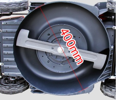 | | 06Méid an deicCumas gearrtha 16 orlach (400mm): Gearr níos mó féir i níos lú ama. |